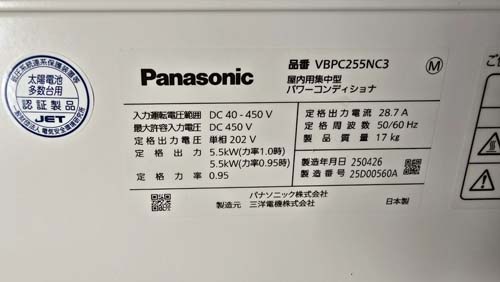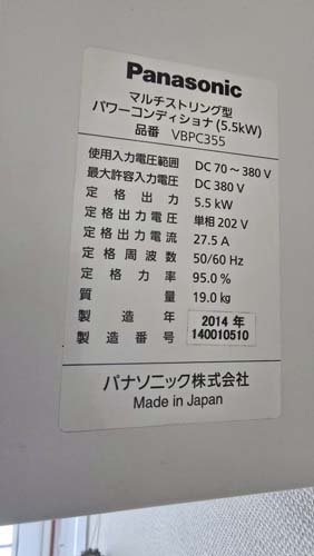 伊丹市西台 パナソニック パワコンディショナ マルチストリング型VBPC355→パナソニック パワコンディショナ屋内用集中型VBPC255NC3 パワコン交換工事
